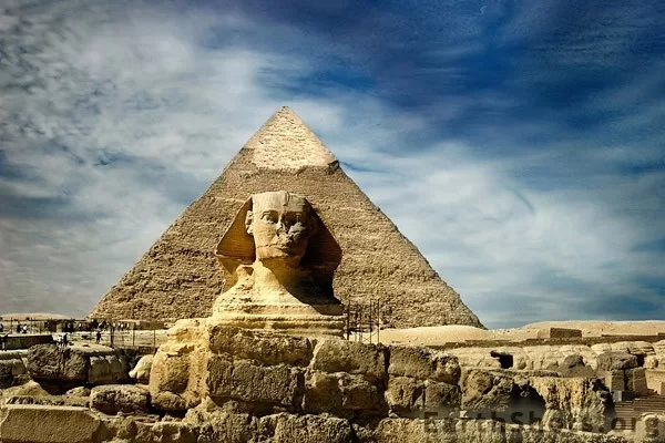 Великий Сфинкс Гизы, обычно называемый Сфинксом Гизы, Великим сфинксом или просто Сфинксом, представляет собой известняковую статую лежащего сфинкса, мифического существа с головой человека и телом льва. Обращенный прямо с запада на восток, он стоит на плато Гиза на западном берегу Нила в Гизе, Египет.