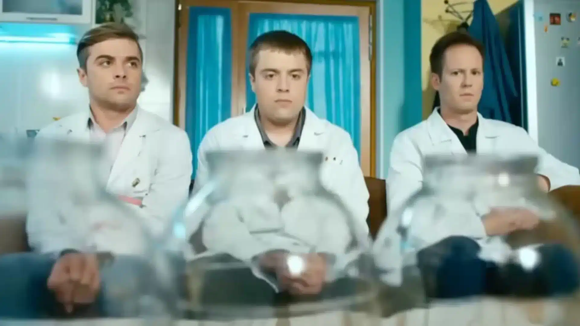 В баре с друзьями и тостами за здоровье.