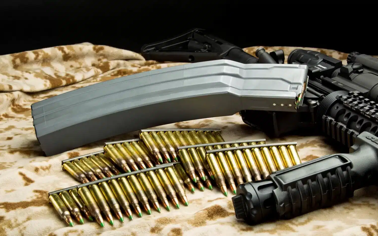 Стандартная ёмкость магазина автомата Калашникова (АК) — 30 патронов. Существуют также коробчатые магазины на 20 и 40 патронов, а также барабанные магазины на 75 патронов.
